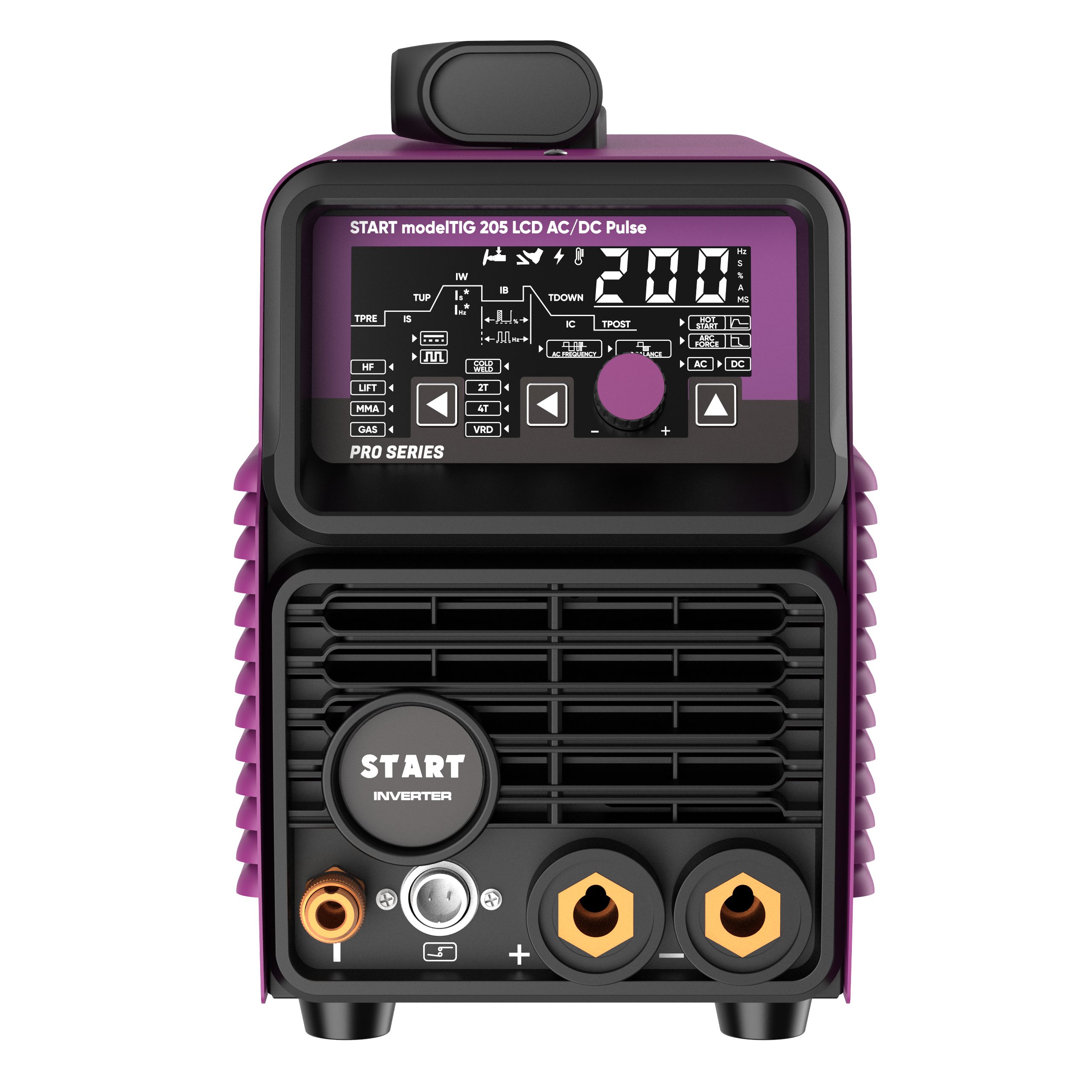 Аппарат аргонодуговой сварки START modelTIG 205 LCD AC/DC TIG PULSE – предназначен для аргонодуговой сварки (TIG) на переменном (AC) и постоянном (DC) токе, а также для ручной дуговой сварки (MMA). Аппарат позволяет выполнять сварку алюминия, нержавеющих, углеродистых и легированных сталей, меди, титана и других цветных металлов.