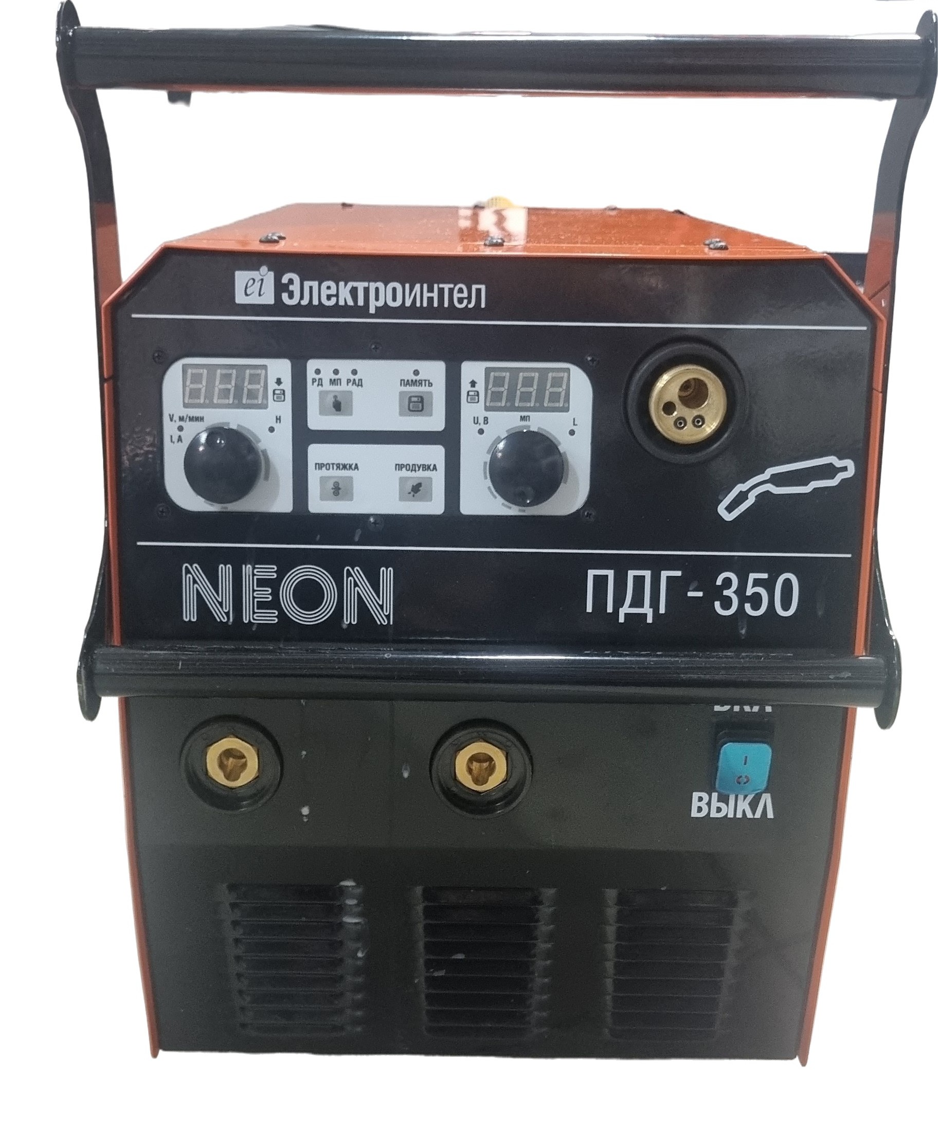 Полуавтомат НЕОН ПДГ-350 (380В, без горелки) — совершенно новый аппарат в линейке полуавтоматов НЕОН от производителя Электро Интэл. Полуавтомат моноблочный, имеет небольшие колеса для удобства перемещения и ручки с двух сторон, выполнен в компактном металлическом корпусе с горизонтальной установкой катушки сварочной проволоки (до 15 кг). Подача проволоки осуществляется 4-х роликовым механизмом подачи. Присутствует возможность подключения блока БЖО через специальный разъем. Аппарат обладает внушительным списком возможных настроек в трех режимах сварки — РД, РАД, МП.