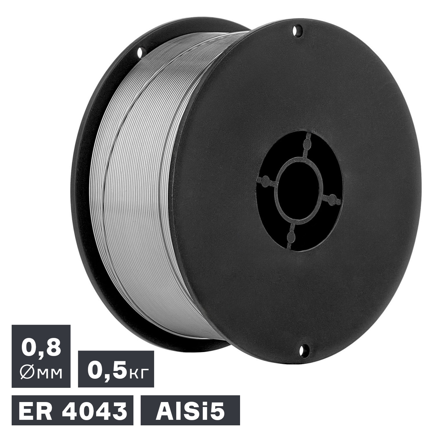 Проволока сварочная алюминиевая ER-4043 (AlSi5) д.0,8 мм (0.5 кг) — используется для полуавтоматической MIG сварки изделий из многослойного листового материала, проката и отливок алюминиево-кремниевых сплавов (силумины) с максимальным содержанием кремния до 5%.
