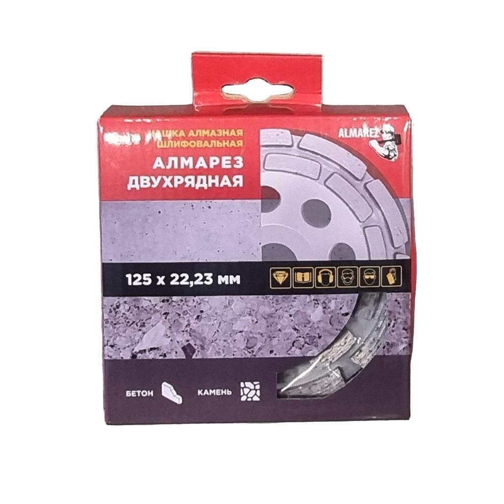 Чашка шлиф. алмазная сегм. двухрядная 125х22,23 мм «Almarez» — применяется для шлифования камня, кирпича, бетона.