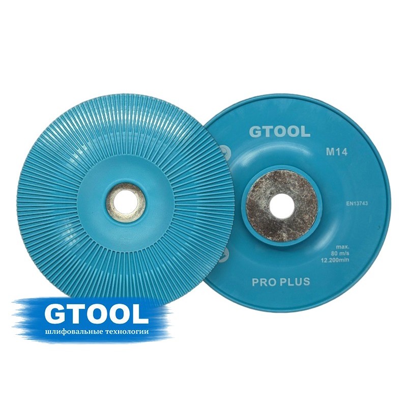 Оправка под фибровый круг d125мм GTOOL PRO PLUS (T) — где буква «T» означает что тарелка имеет высокую твердость. Данная опорная тарелка — специально разработанное изделие из высокотемпературного нейлона (HTPA).