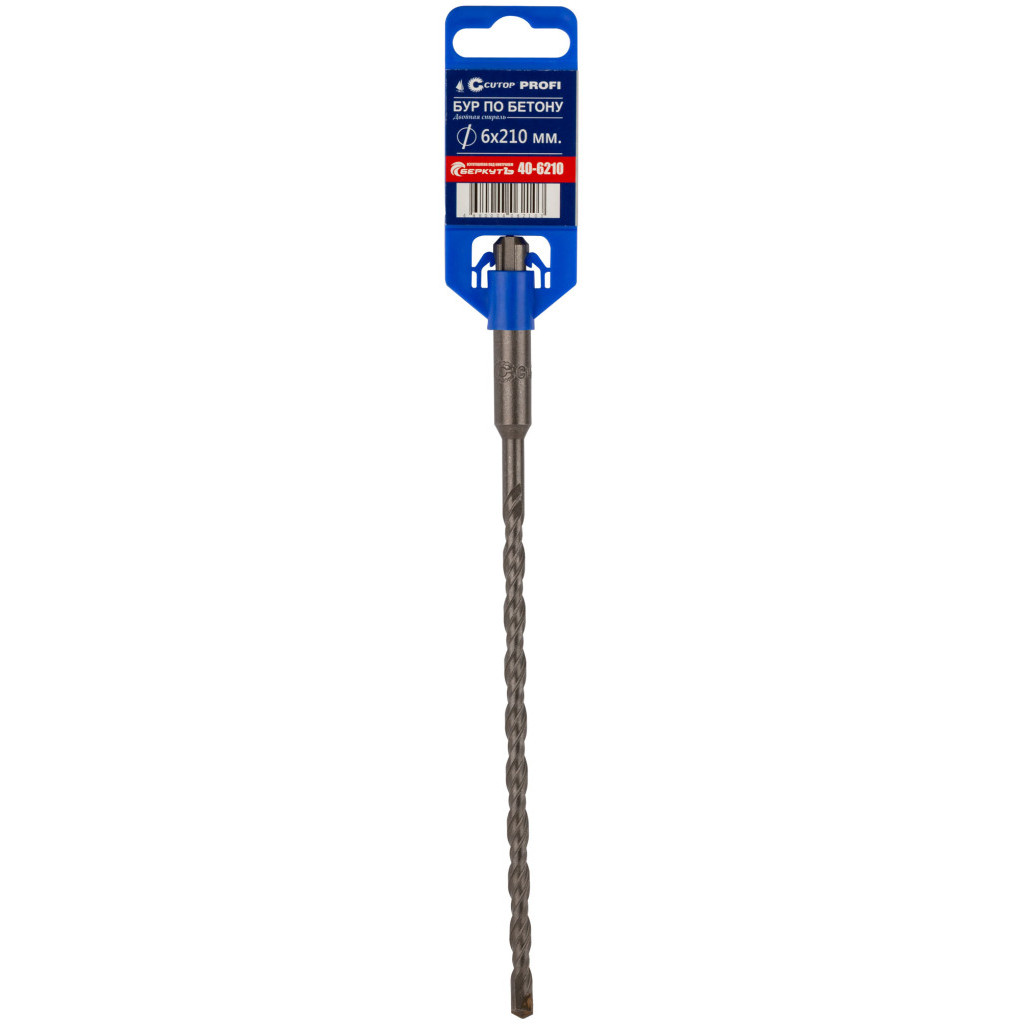 Бур SDS-plus 6*210 мм. CUTOP PROFI – предназначен для ударного сверления отверстий в бетоне, камне, граните и кирпиче. Хвостовик SDS-Plus обеспечивает надежную фиксацию бура в перфораторе и быструю смену оснастки. Легированная инструментальная сталь с добавлением хрома обеспечивает износостойкость бура. Карбидный наконечник повышенной плотности с добавлением 8 % кобальта обеспечивает долгий срок службы бура без изменения диаметра. Двойная спираль сохраняет постоянную скорость бурения.