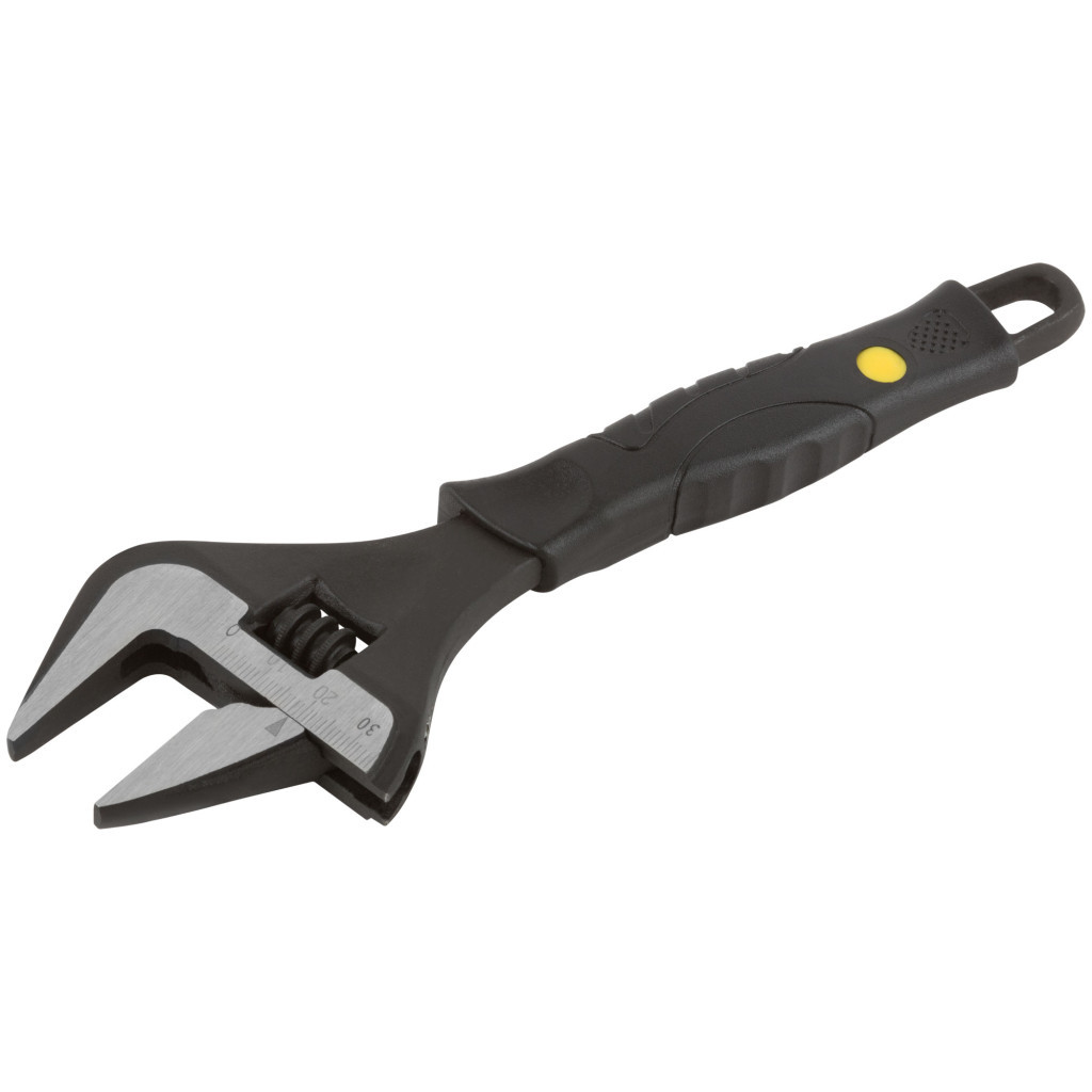Экстра увеличенный рабочий диапазон губок. Размерная шкала. Уменьшенная толщина губок для работы в труднодоступных местах. Материал: инструментальная сталь с фосфатированным покрытием, пластиковая накладка на ручку. Упаковка: пластиковый подвес.