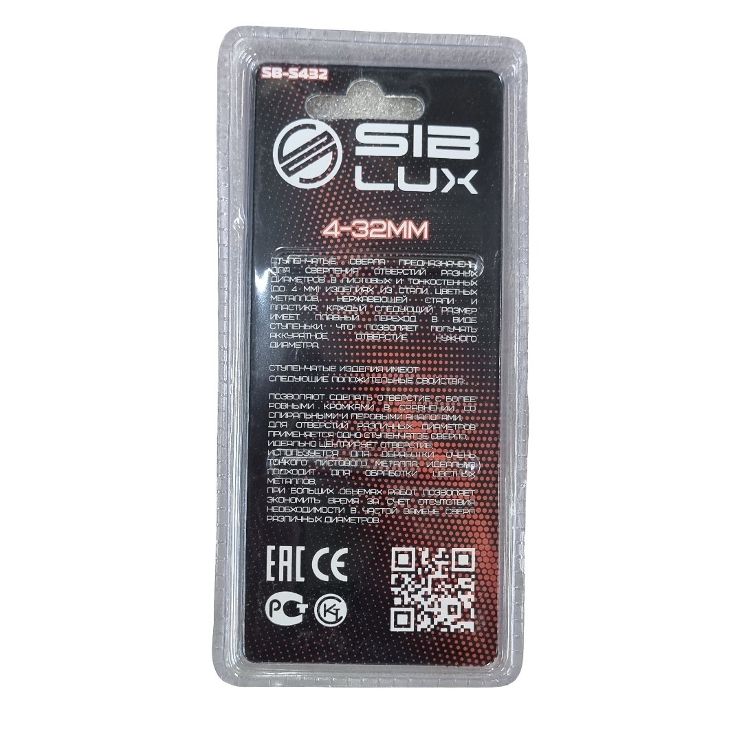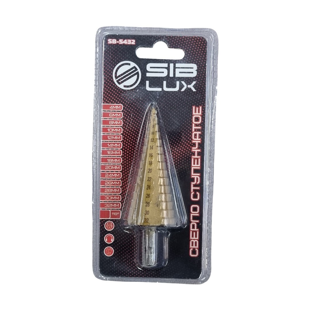 Сверло ступенчатое по металлу 4-32мм 15 ступеней, SB-S432 — предназначено для сверления и рассверливания отверстий в листовых материалах (сталь, цветные металлы, пластик). Конструкция сверла обеспечивает улучшенный отвод отходов сверления.