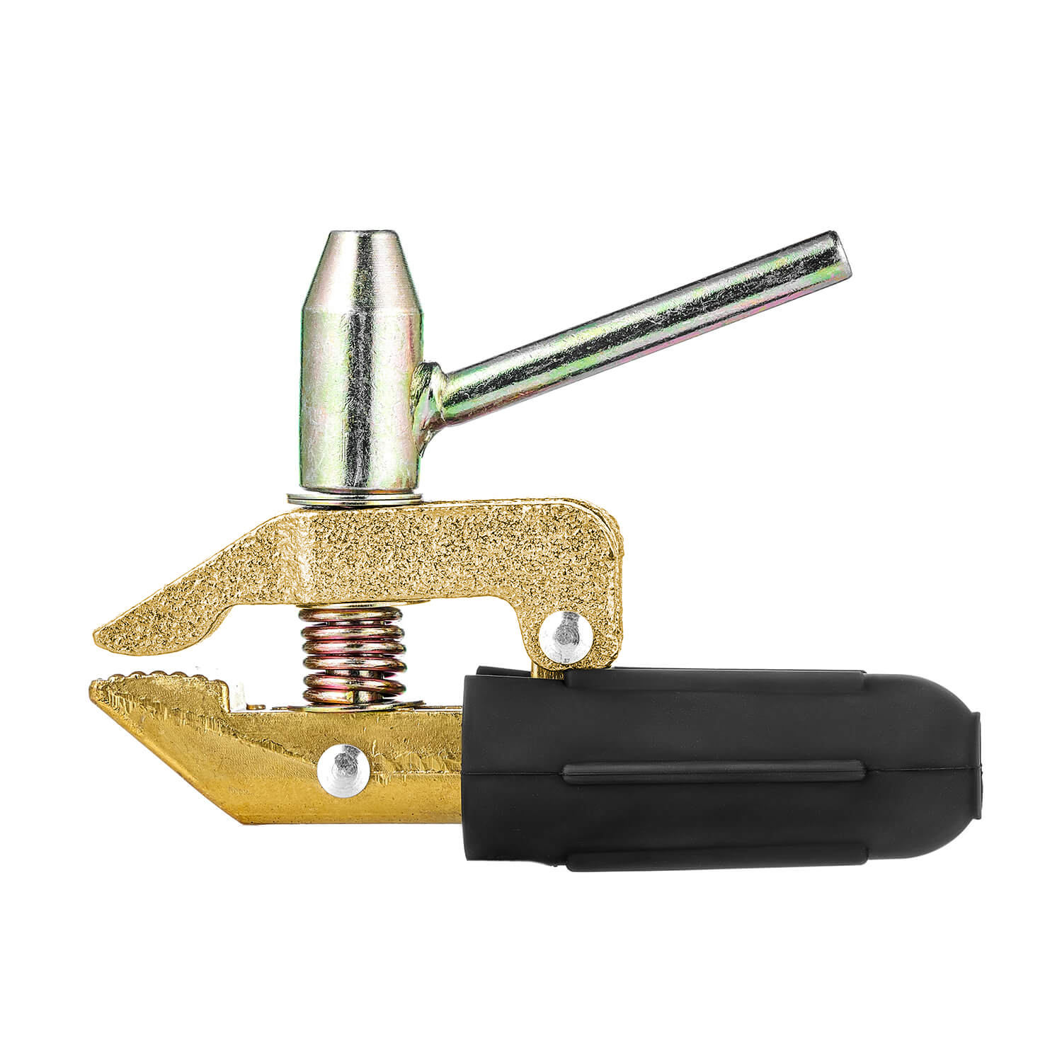 Клемма заземления КЗ-65 (струбцина) ПТК – рассчитана на сварочный ток до 600 Ампер. Гарантирует плотный контакт в месте подключения за счет губок, поджимаемые ручкой на резьбовом соединении М10х1,5. Предназначена только для работы с электросварочным или плазменным аппаратом. Струбцина оснащена прорезиненной железной ручкой.