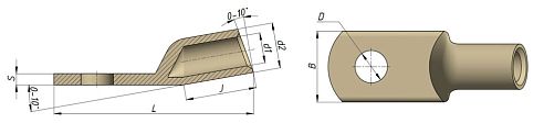 Наконечники ТМЛ 35-8-9 изготавливаются из медной трубы марки М2 с защитным покрытием олово-висмут (электролитическое лужение). Наконечник одевается на жилу кабеля и опрессовывается гидравлическим или ручным прессом. Такой метод жестко скрепляет наконечник и жилу кабеля, обеспечивая надежный контакт.